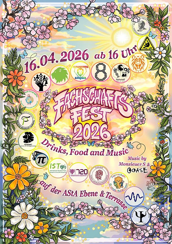 Am 16.04.26 startet das Fachschaftsfest ab 16 Uhr auf der Terrasse der AStA-Ebene!